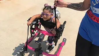 Since then, she’s needed ongoing care to support her growth. Our grant helps her receive intensive therapy at Napa Center Inc. in Los Angeles, California, helping her build strength, improve posture and alignment, and develop clear speech. -